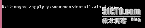 6、将序号是4的系统,即旗舰版,注入前面准备的VHD文件中,命令如下:Imagex /apply g:\sources\install.wim 4 s:\