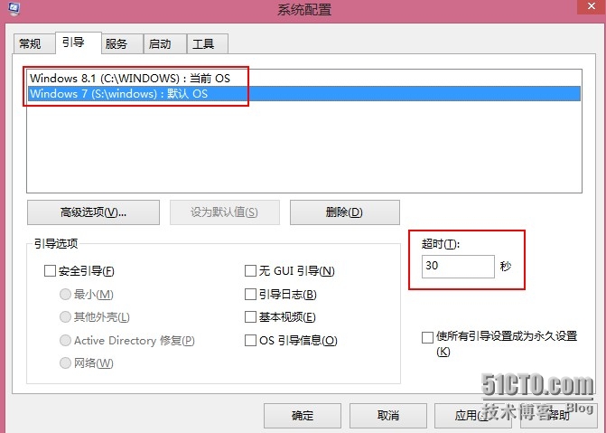 3、切换到引导选项卡,能够看到刚刚添加的引导信息,可以修改以哪个系统作为默认系统,并在右侧配置延迟启动时间,以供我们选择系统。