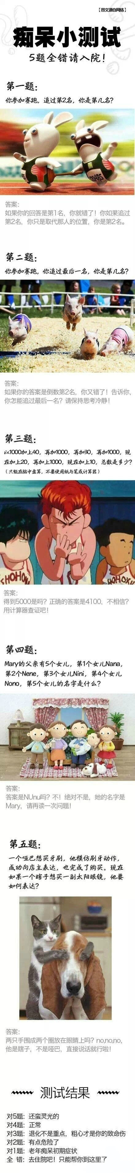 痴呆小测试,转给你觉得需要治疗的小伙伴,5题全错请入院~