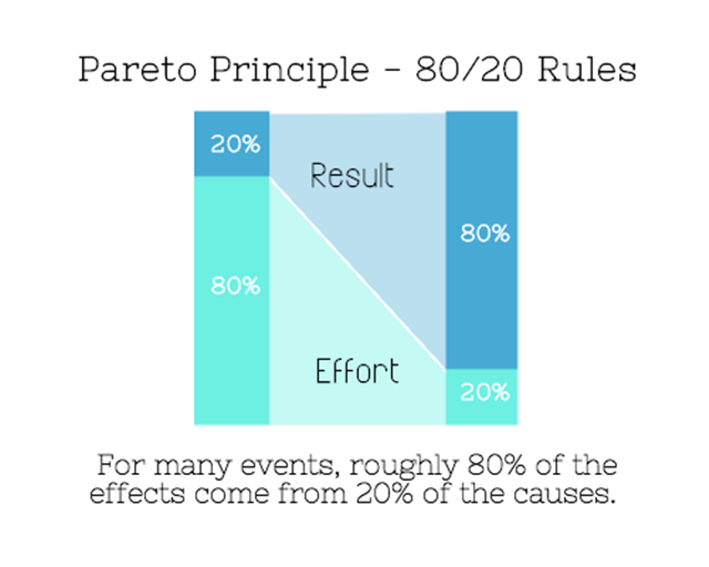 帕累托定律定律指出,你获取的80%的产出是由20%的努力带来的;而剩下的20%的产出,则需要消耗80%的努力。我们不应该仅仅专注于努力工作,更应该专注于优先完成最重要的工作。专注于那些只需20%的努力就能获得的80%的产出,暂时放弃剩下那20%的产出。我们必须停止对每一件任务都说yes的习惯,因为这些任务中,有很多需要你花费大量的精力,但是却几乎无法未你带来回报。成功人士和非常成功的人士之间的区别,就在于非常成功的人机会会对每一件事情说“No”。—?Warren Buffet.