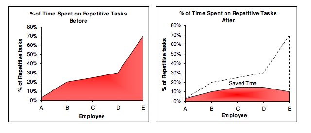 Tethys Solutions进行了一个实验,他们发现,在进行重复工作的时候,虽然我们对这个工作更加熟悉,可是实际上,完成这项工作的时间反而增加了。而如果使用自动化软件进行这些工作,则会减少很多无谓的时间消耗。