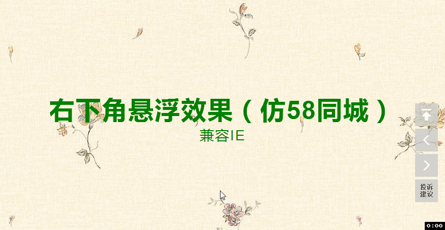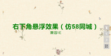 仿58同城右下角悬浮窗特效 发表于 2015-10-13 更新于 2018-02-24 分类于 WEB , HTML , Demo花了点时间折腾了一下,完美主义,很多细节都做了一些修改,总体上来说效果还是不错滴(^_^)效果图预览当然,你也可以直接打开网页亲自测试效果:在线演示地址在线演示